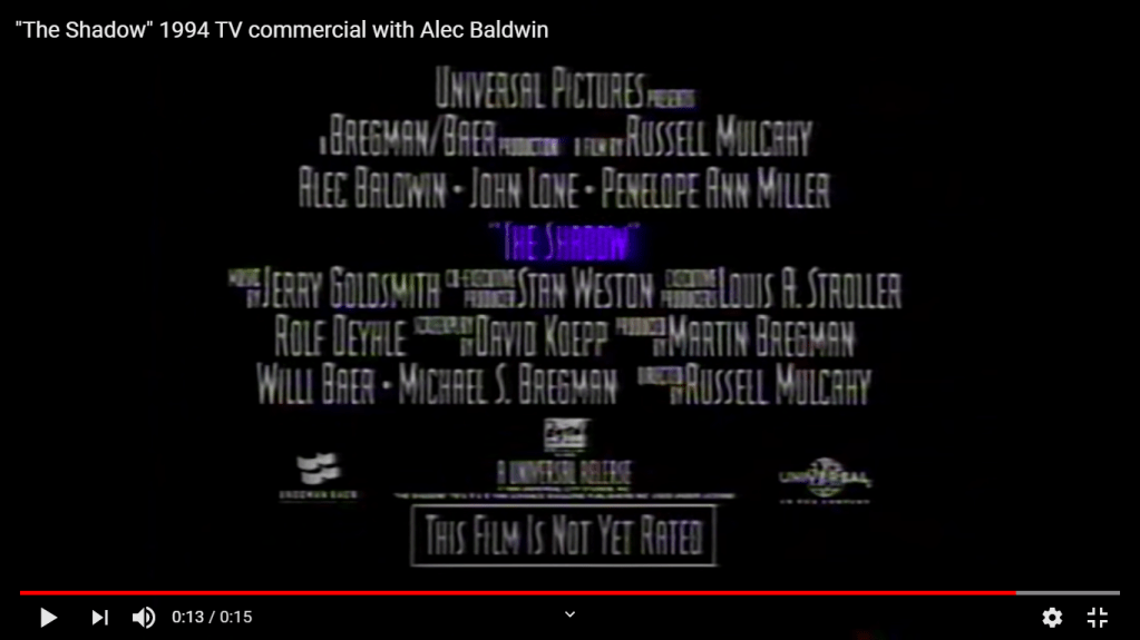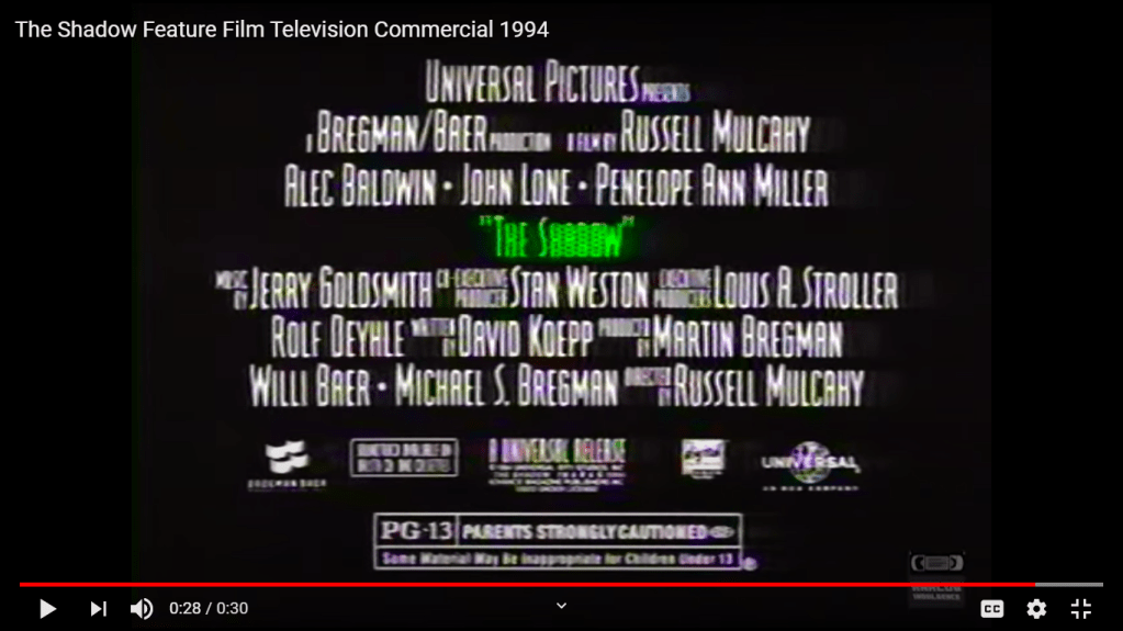 The Shadow (1994) https://en.wikipedia.org/wiki/The_Shadow_(1994_film) Share this: Click to share on X (Opens in new window) X Click to share on Facebook (Opens in new window) Facebook Like Loading... Related Leave a comment Cancel reply Δ